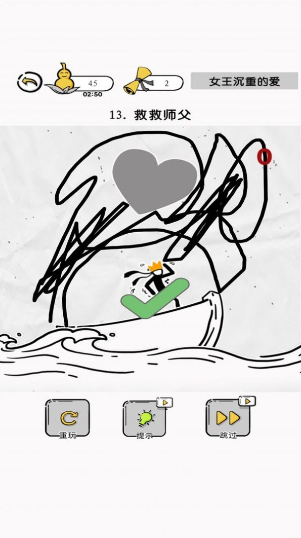 3、这里可爱火柴人形象,更多的道具使用,还能获取提示,简单画线,救救师傅。