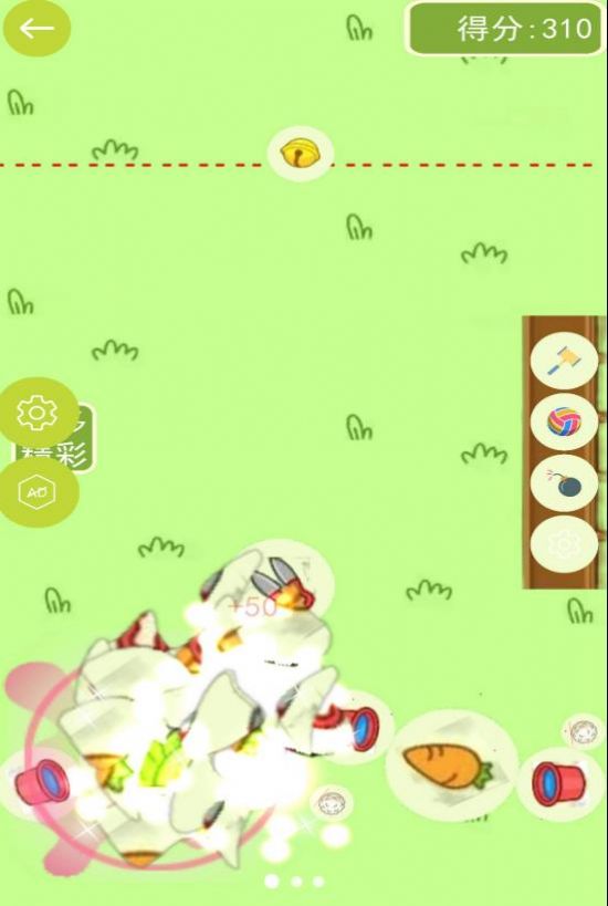 2、这里物品的种类非常丰富,你要全力进行合成,不要让物品到达警戒线上方。