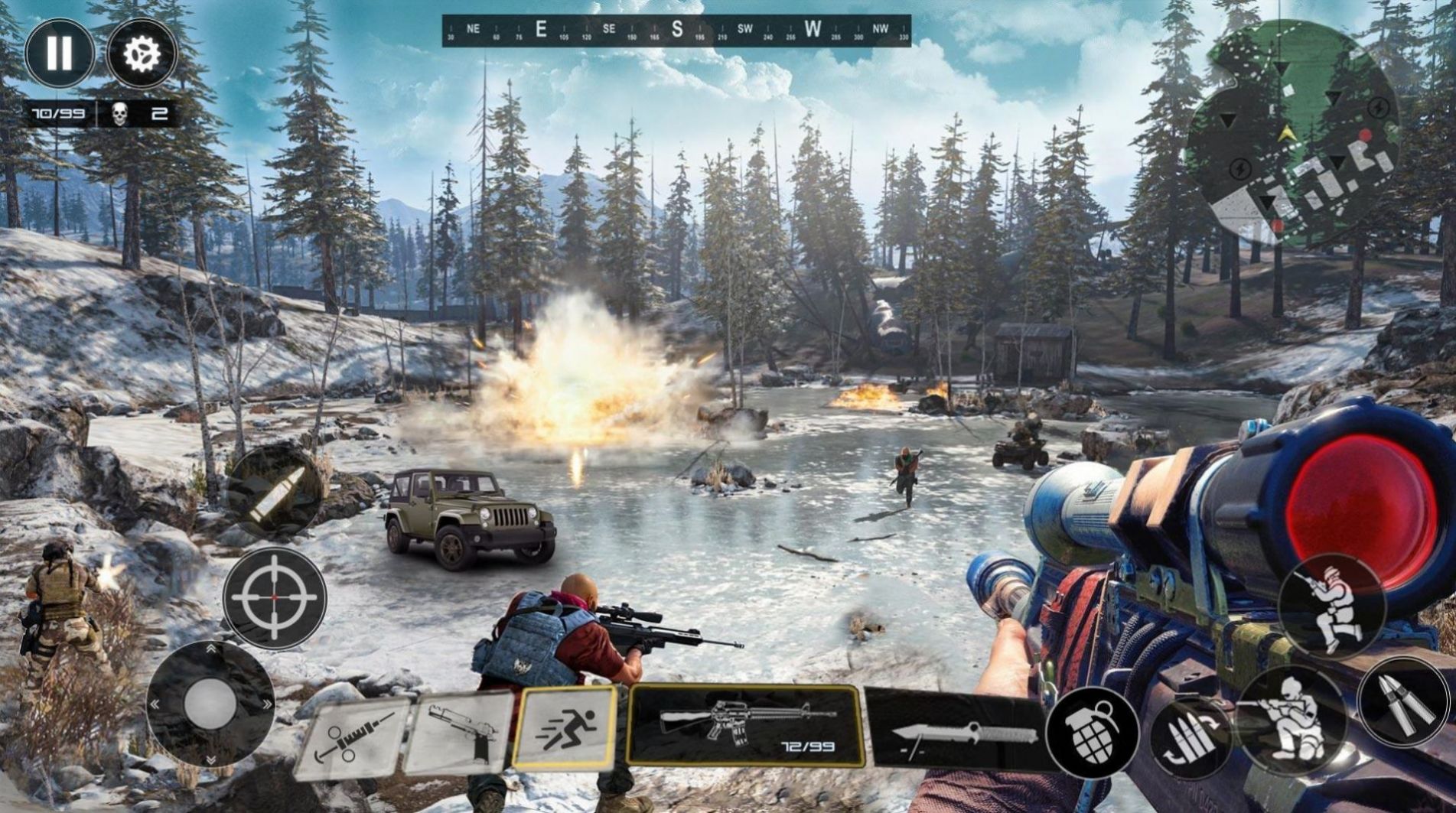 吃鸡战争射击是款好玩的射击枪战手游,和你的团队在不同的环境中完成挑战,刺激的游戏过程非常的有趣,利用掩体来阻挡敌人的进攻,在默契的配合下完成各种难度的任务,体验射击的真正魅力吧!