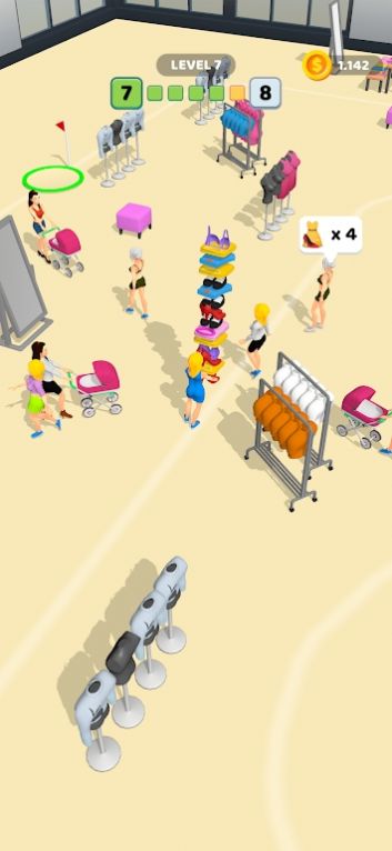 3、注意不要碰到来回行走的客人,保持最多服饰到达终点获得奖励。