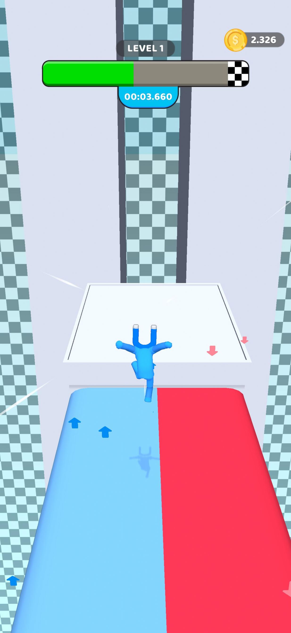 1、左右滑动屏幕,控制磁头人奔跑移动,选择同极磁铁(蓝色)通过。