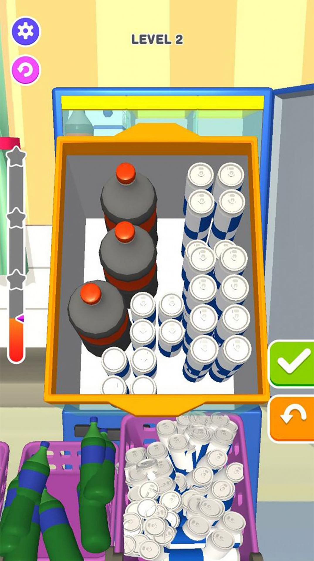 2、选择合适的盒子放置正确大小的物品才能通关哦!第十关的通过率不足3%。
