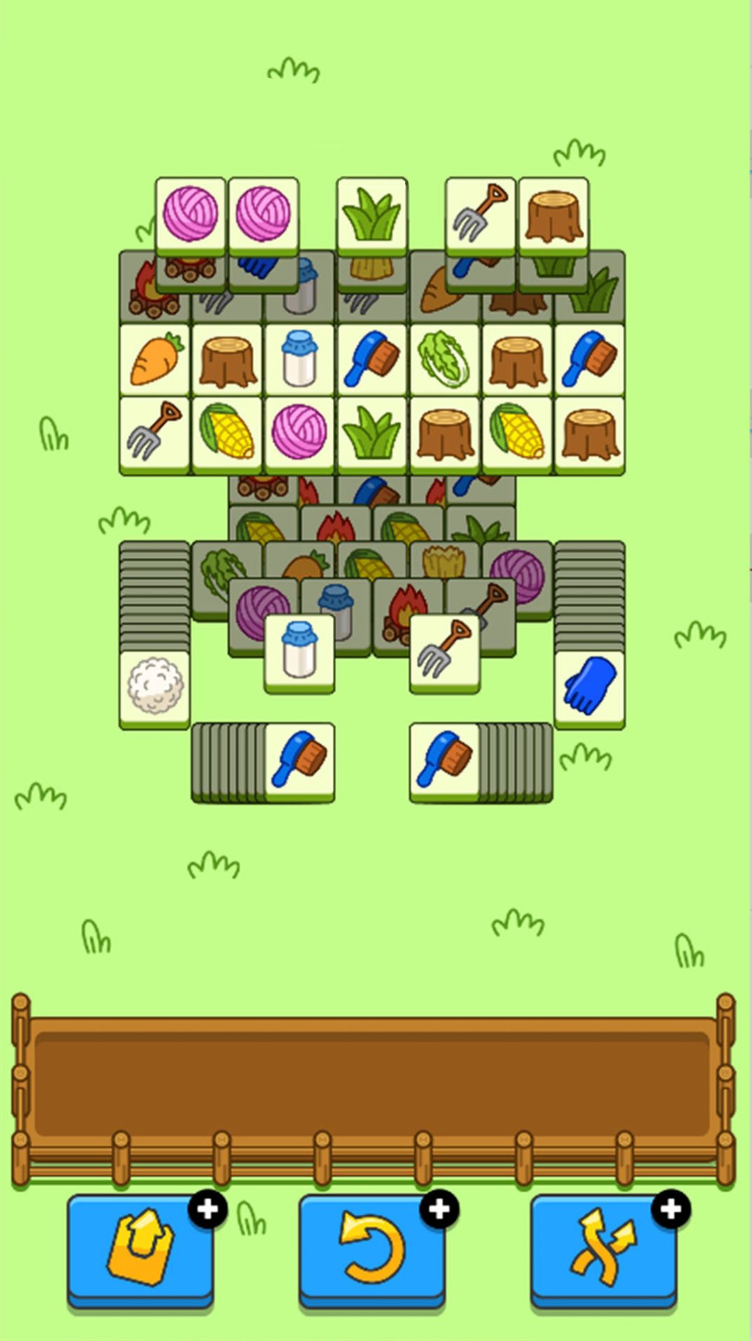 3、需要在上方的移动槽中找出与下面棋盘上相同的卡牌,并在找到3个以后消除;