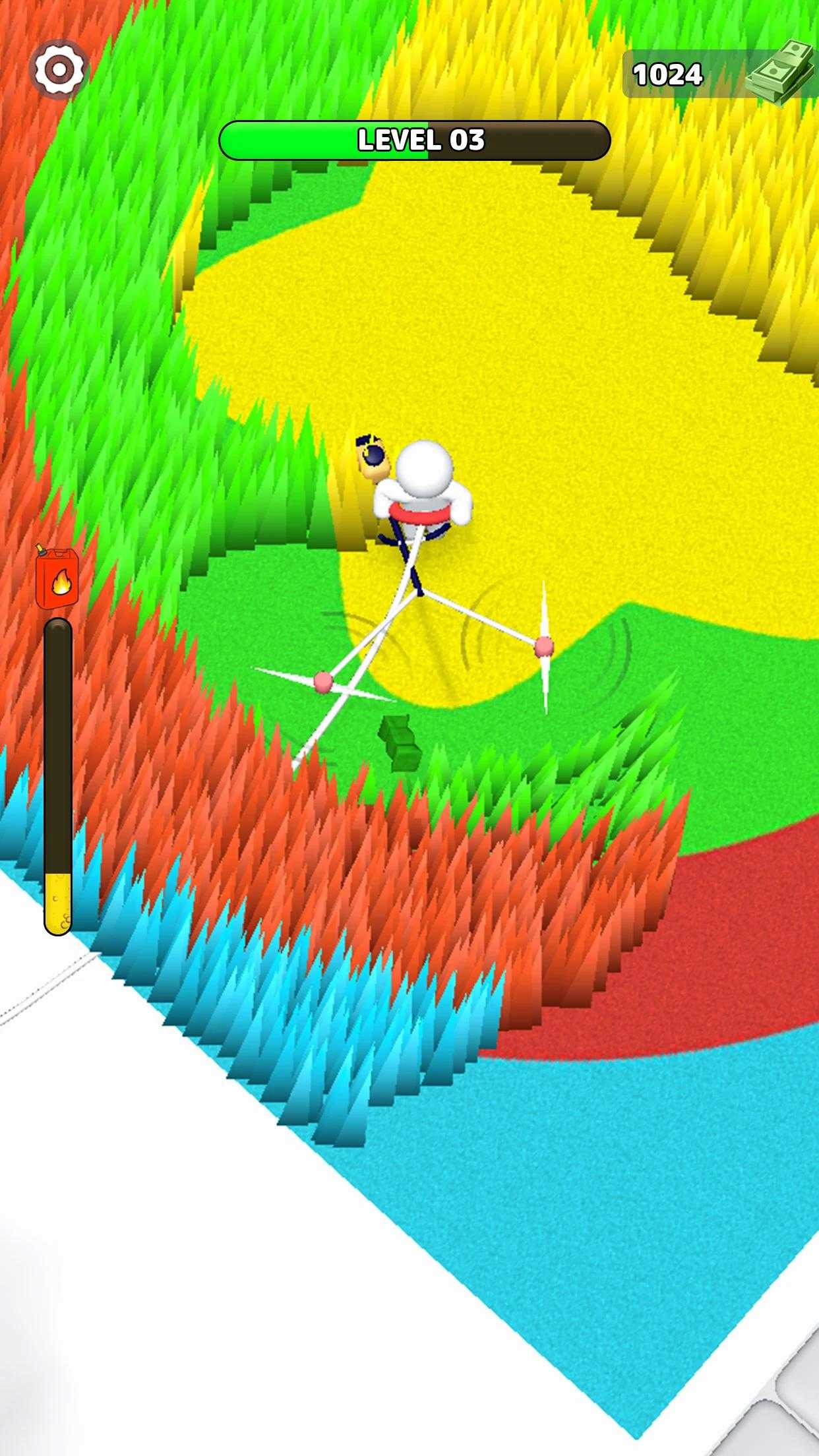 延长你的绳子,在割草机游戏中割草。在这个割草游戏中,你需要用割草机控制住那个家伙,尽可能快地清除院子里的草!在该地区走动,砍伐灌木丛,收集金币,解锁和升级割草机器。