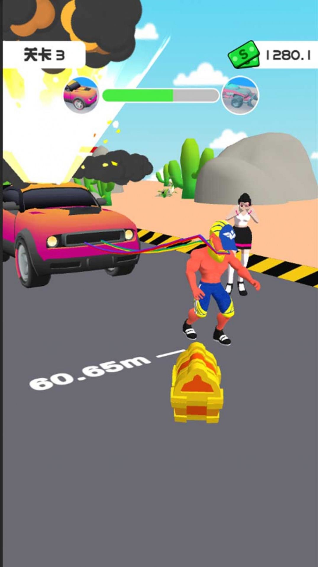 这是一款有趣的休闲小游戏,在游戏中你将化身成为一名挑战极限的健身达人,挑战用嘴把汽车向前拉动100米。你可以不断强化升级你的速度和力量,让你有更加充沛的体力挑战拉车的极限距离。你还可以通过购买衣服和绳索等道具来增强自己的属性。不要勉强自己,在拉车时注意自己的体力消耗,在体力耗尽前休息一下,然后继续你的健身挑战之旅。