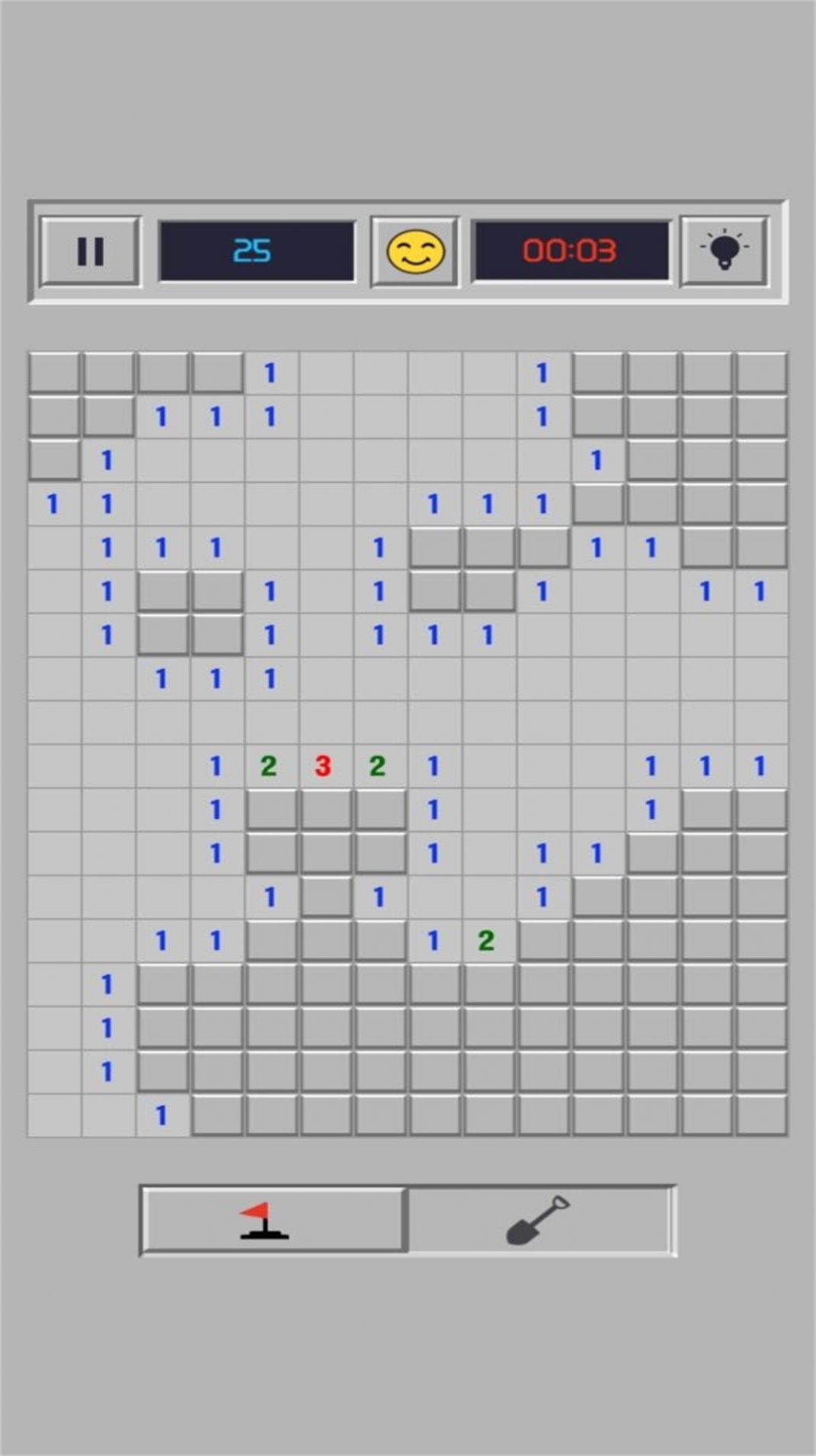 3、欢乐十足的游戏过程,点击屏幕,解开格子,找到隐藏地雷。