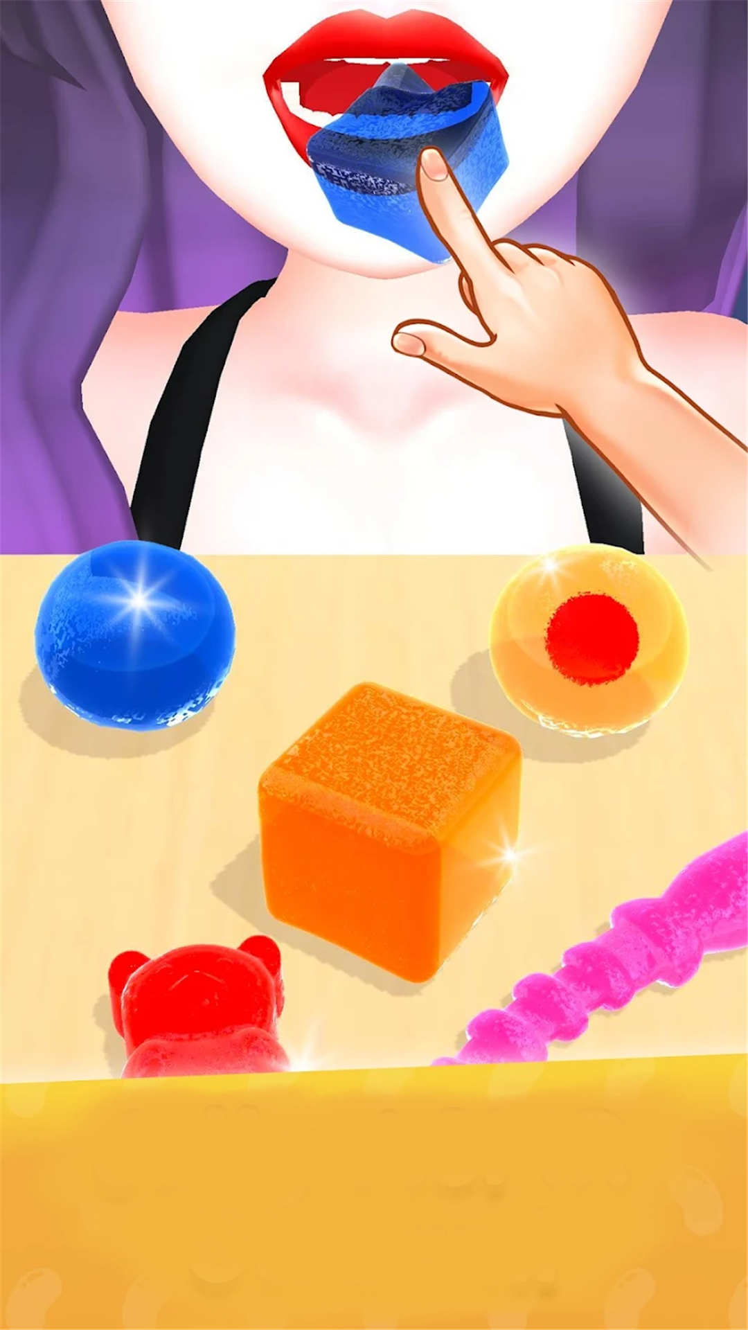 把他们喂给角色,发出令人发送的解压咀嚼声,制作各种种类的果冻软糖,让玩家得到放松。