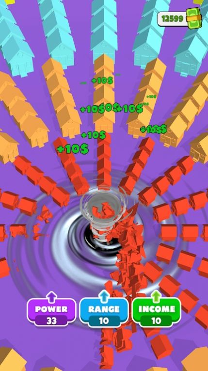 你需要不断的将各种的小房子都吸收掉,不断的扩大你的龙卷风的威力,下载挑战试试吧。