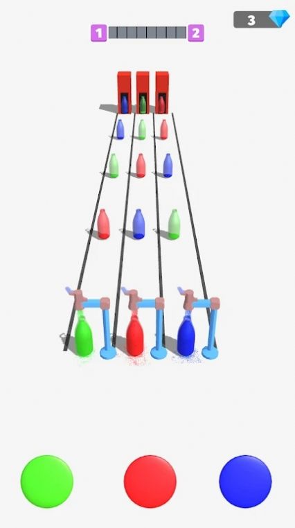 3、当颜色正确对齐时,水龙头会很快倒入瓶中,然后继续前进。