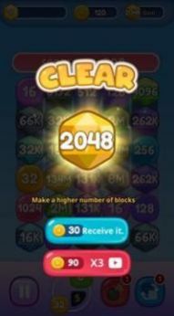 3、中玩家将不断射出方块,将所有的相同数字方块合并到一起,让数字相加。