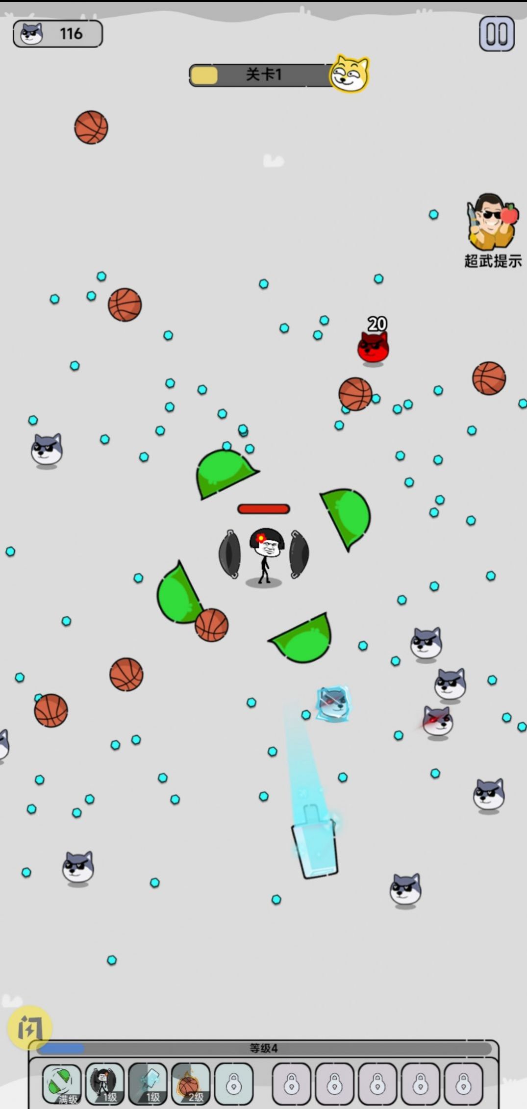 1、消灭火柴人表情来获得更多的能量,升级角色的技能,获得超强的战斗属性;