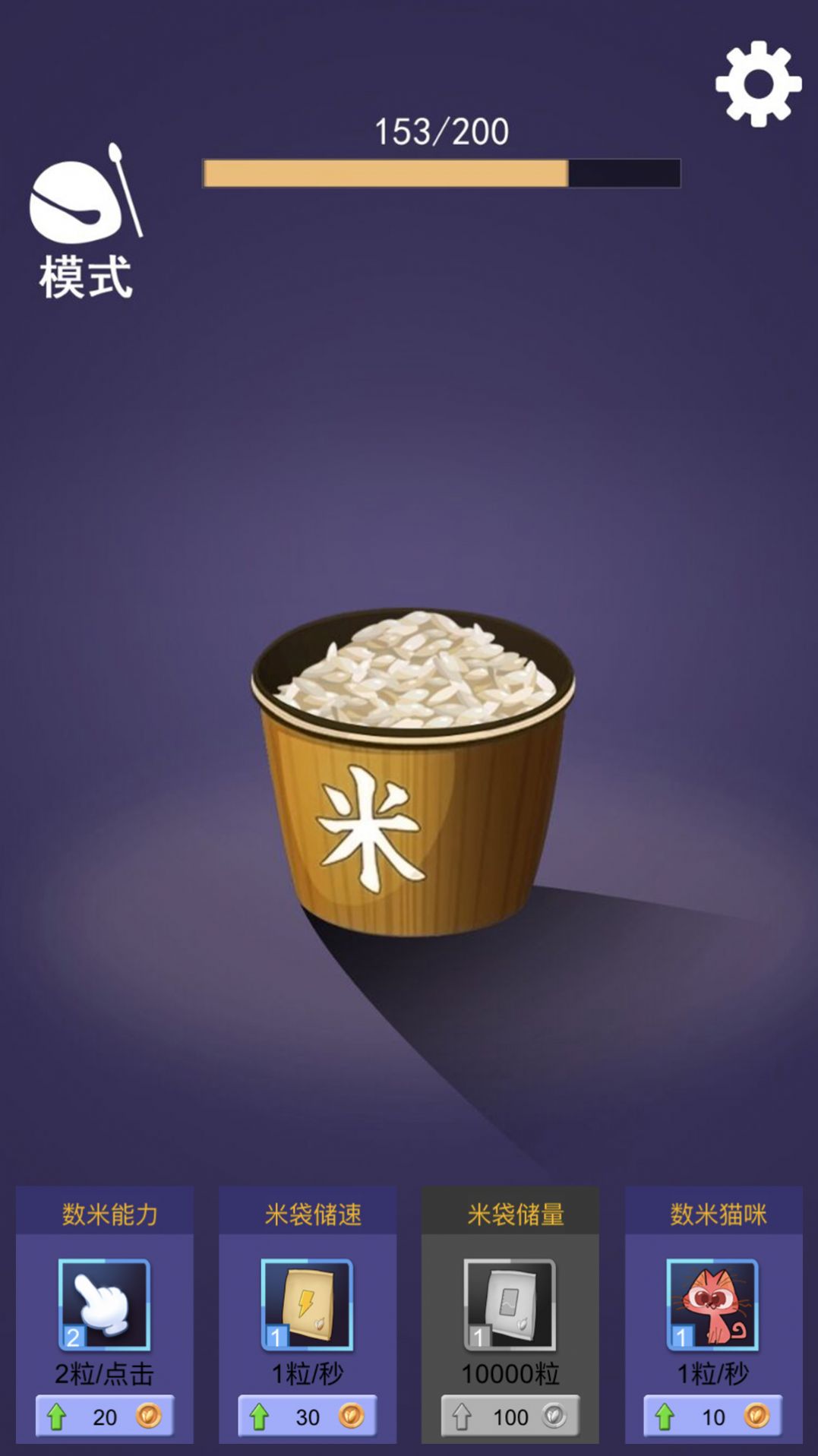 1、游戏的玩法就是数米,目标开局就给你摆在屏幕正上方,就是数够1亿粒米,
