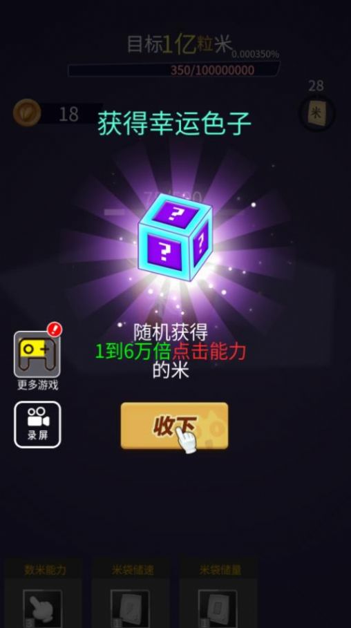1、非常魔幻的游戏体验,升级米粒,轻松数出一亿粒米来;