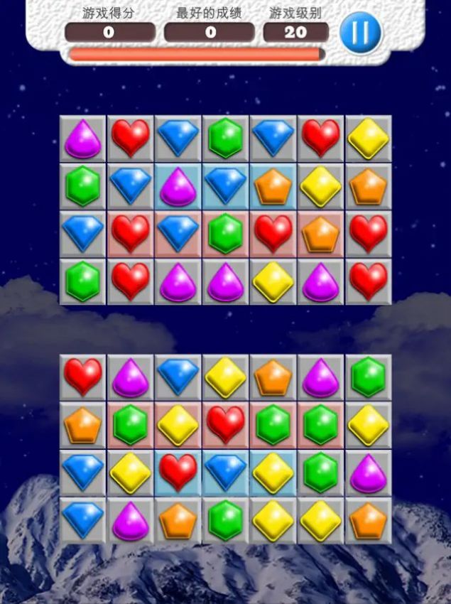 3、不同难度的消除任务,尽情挑战,将相同宝石移动在一起消除。