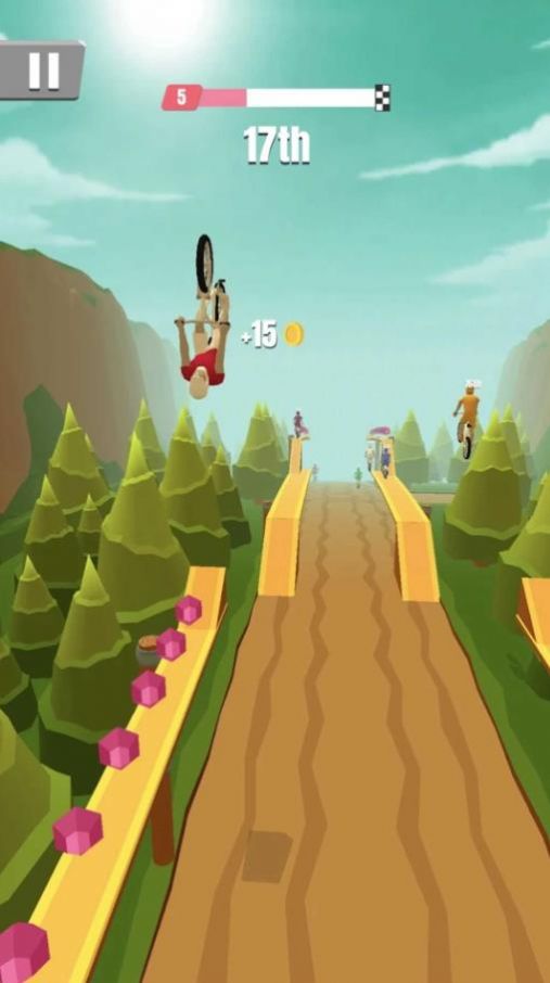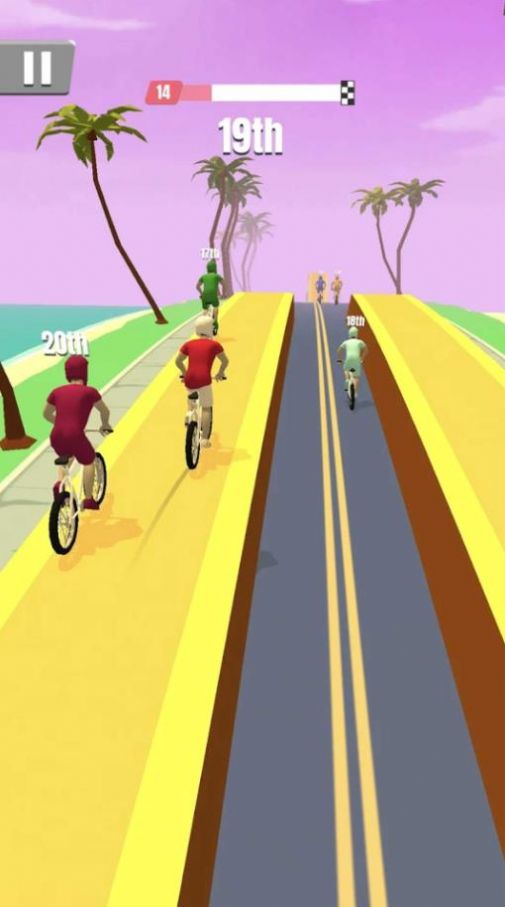 欢乐自行车游戏是一款自行车主题的竞速闯关游戏,骑着自行车不断向前冲刺,将与你比赛的对手都甩在身后,率先冲过终点线的玩家就可以成为名副其实的第一名啦,在这过程中会有非常多的弯道,把控好自行车的速度,全力以赴的朝着自己的梦想靠近,你也将收获到无穷欢乐!