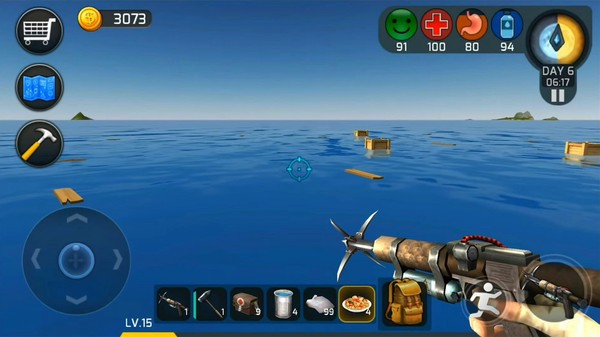 2、打造各种必备物品,逐渐发展木筏面积,开启木筏求生挑战