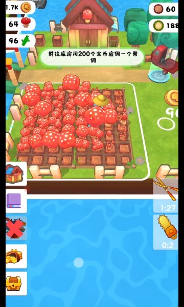 1、你将拥有自己的蘑菇庄园,好好打理这个小花园。