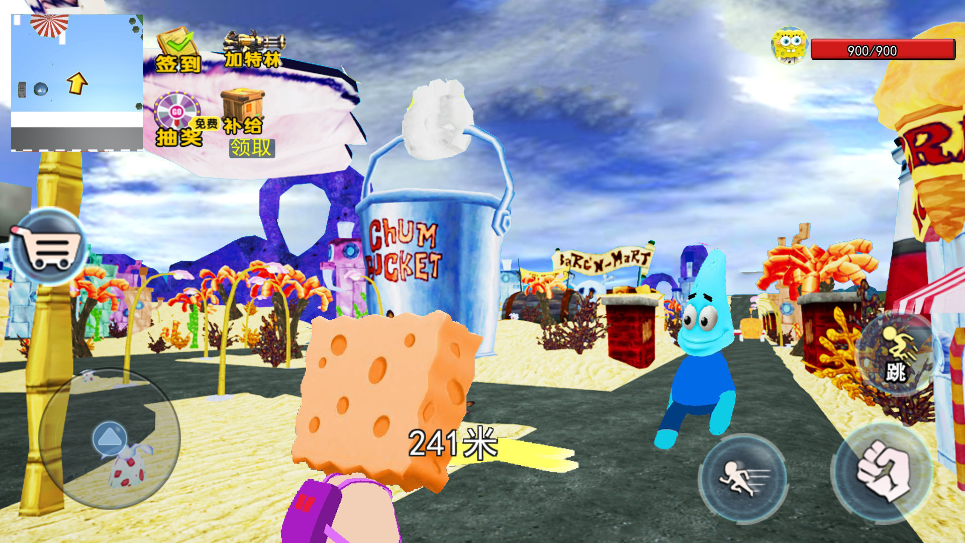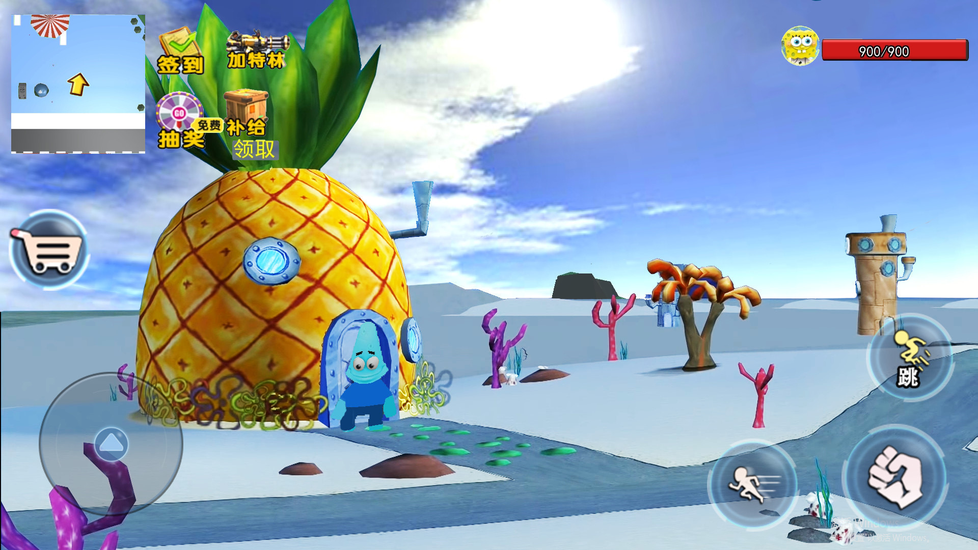 1、在比基尼海滩地区摧毁邪恶的BOSS机器人,在海底世界进行冒险战斗。