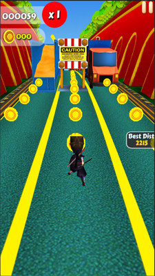是一个有趣的跑步游戏。有很多挑战和良好的3D环境。在这个游戏中忍者继续他的任务,他被他的敌人的狗发现。狗追逐他,他跑....让咕…要玩这个游戏,你需要跑一趟。有时你可以在地上冲浪,跳跃和杂技和更多的行动。避开卡车和一些障碍,你会成功的。这个游戏将检查你的敏捷度。尽可能快地冲上屏幕,否则你会失败的。