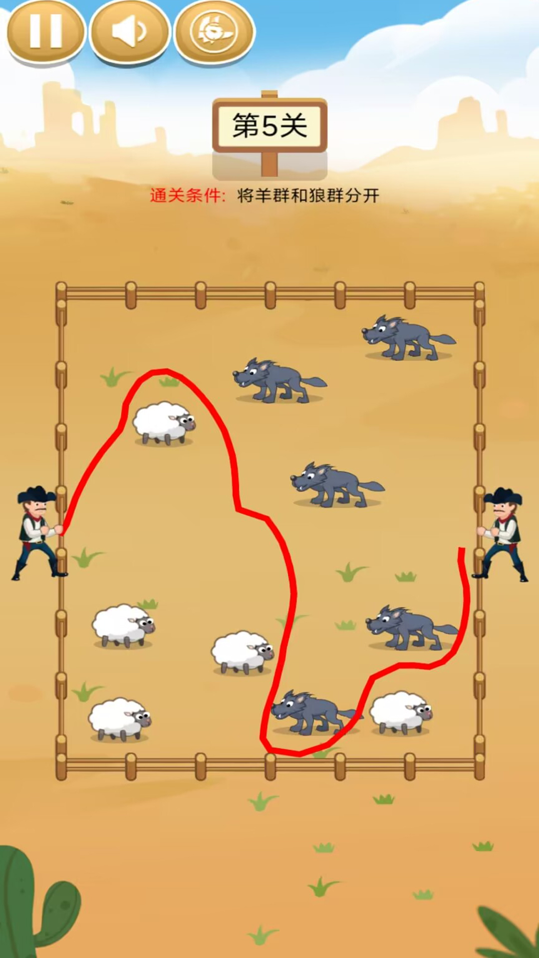 饿狼模拟器游戏是一款很好玩的休闲益智游戏,小羊羔在饿狼的追捕下瑟瑟发抖,而玩家则需要通过画线来帮助小羊避开饿狼的攻击,遵守游戏规则,将所有的小羊都保护下来,这样就代表着你通过当前关卡啦,完成的任务越多,能够得到的奖励就越丰厚,让人极为喜悦啦!