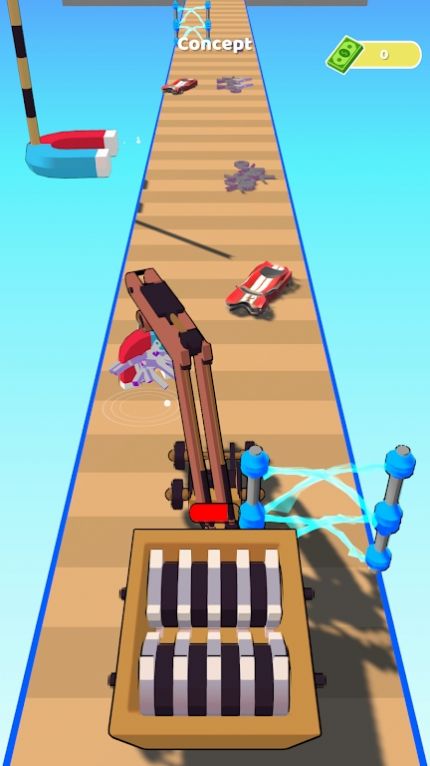 2、开启更多有意思的挑战!你需要控制驾驶着起重机进行收集的操作。