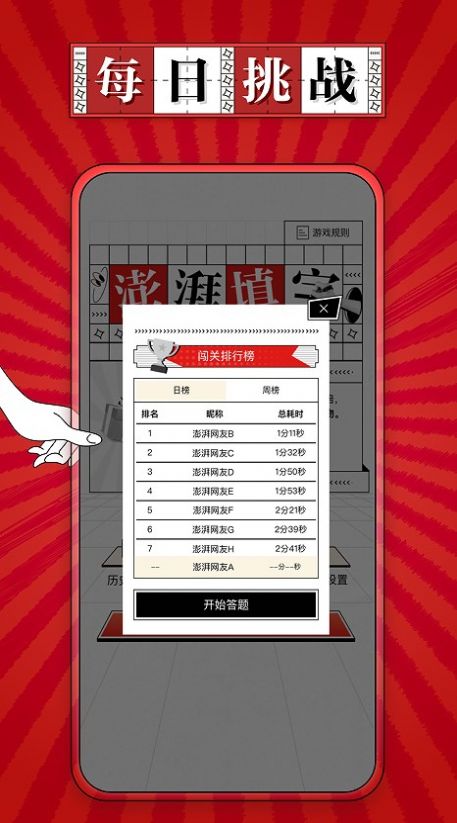 1、设有答题排行榜,每日/周实时更新,快来与广大填字爱好者们一较高下;