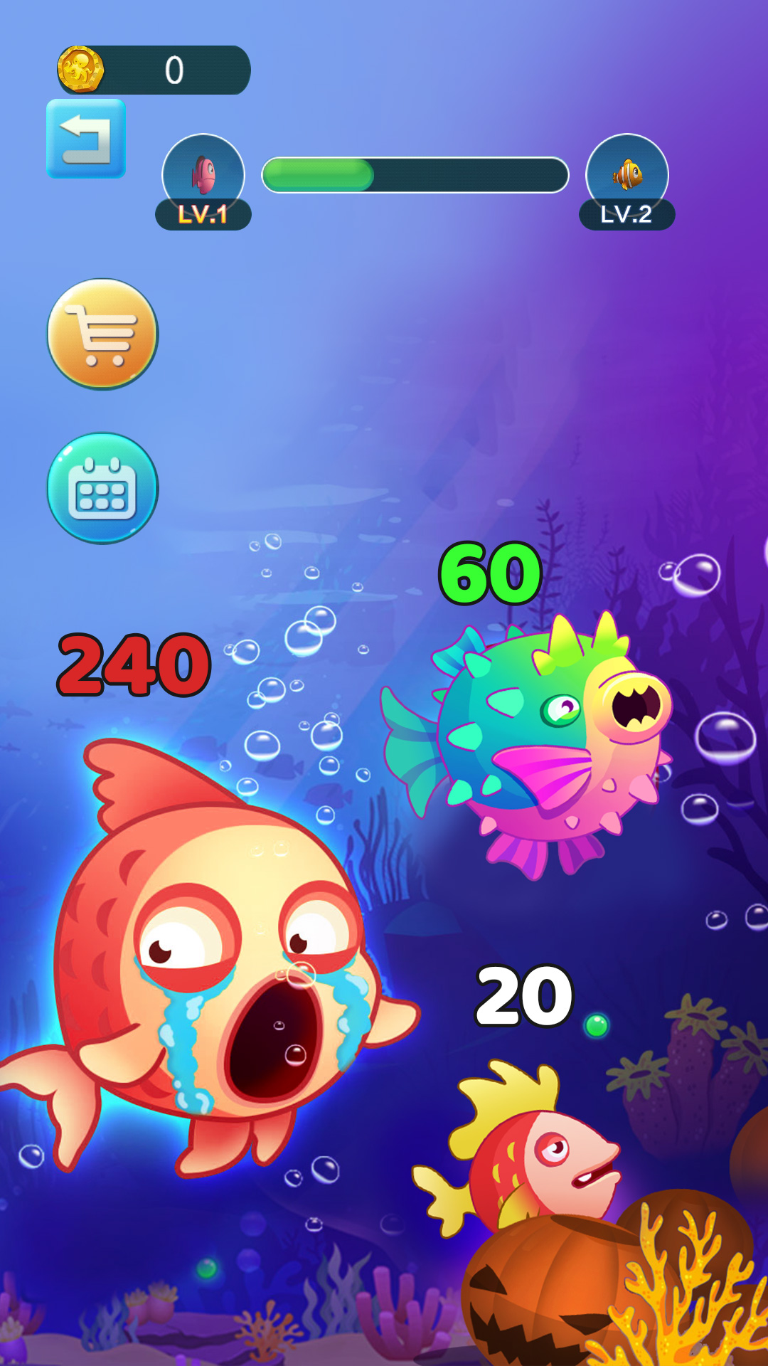 1、非常经典的大鱼吃小鱼玩法,你需要从最初的阶段开始吞噬,每次进化都能改变物种。