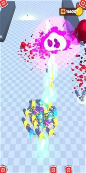 3、玩家将以俯视视角不断射击前方出现的橡胶人,将其全部消灭,使其变成液体。