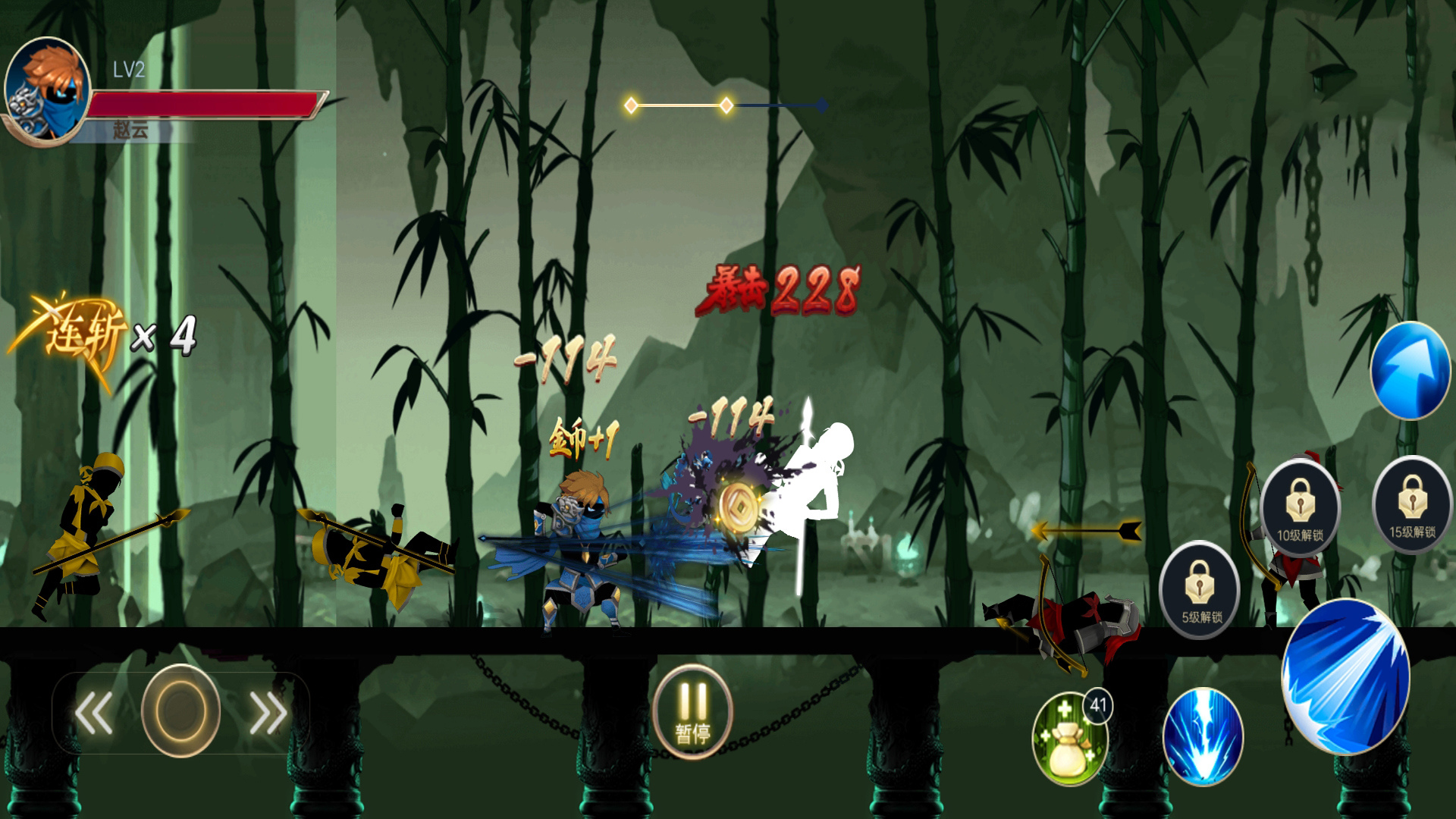 赵云激战官方版是一款横版动作冒险格斗游戏,在诸多的三国背景元素下来操控赵云七进七出,一起欢乐的杀敌来完成你的游戏目标,那样的战斗乐趣还是很熟悉的,你还有自己的模式来击败敌人,一起来掌握适合你的操作来提升实力,你就是这里的无敌赵云来书写你的传奇吧。