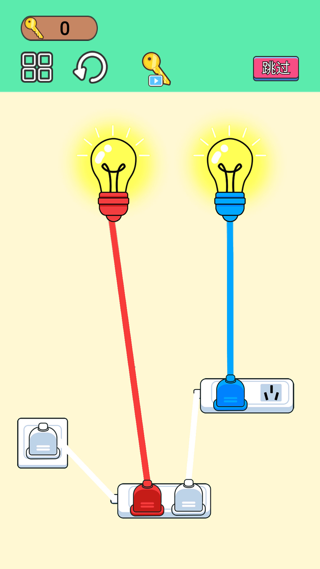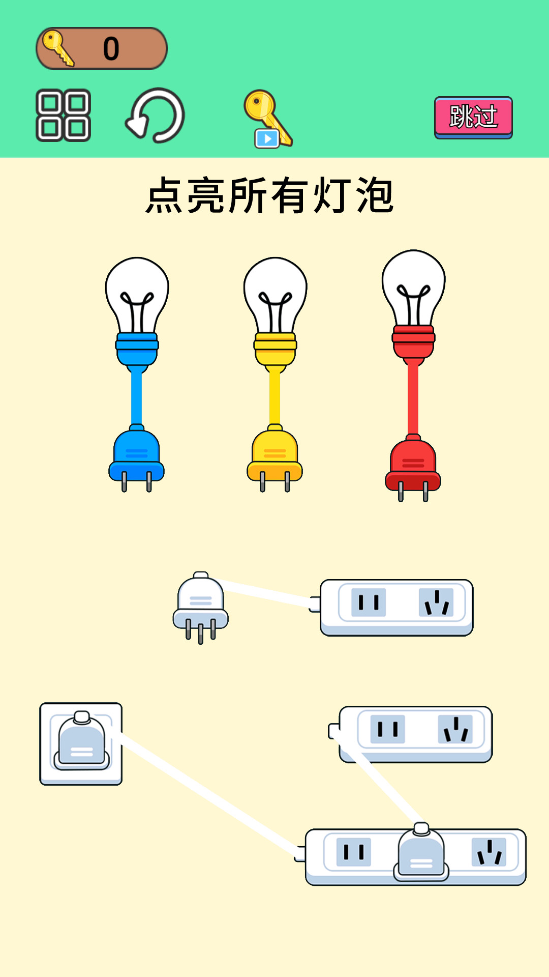 1、目标就是给物品通电,你需要根据插口的数量和位置来合理的分配插头。