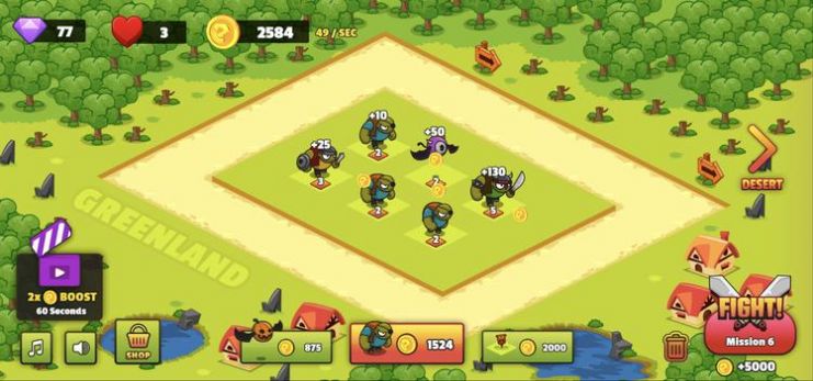 3、解锁更多的可使用角色让其投入到战场之中,合并并建立一支无敌的军队。