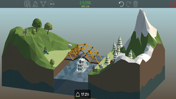 多边形造桥中文版是一款有着诸多造桥乐趣的游戏,在这个虚拟世界来建设你的桥梁,其实是很有挑战难度的,你还有自己的模式来完美的建设各种桥梁,用于连接道路两边,不管下面是河流还是深渊,你都有想办法解决这些问题,建设桥梁是一个巨大的学问。