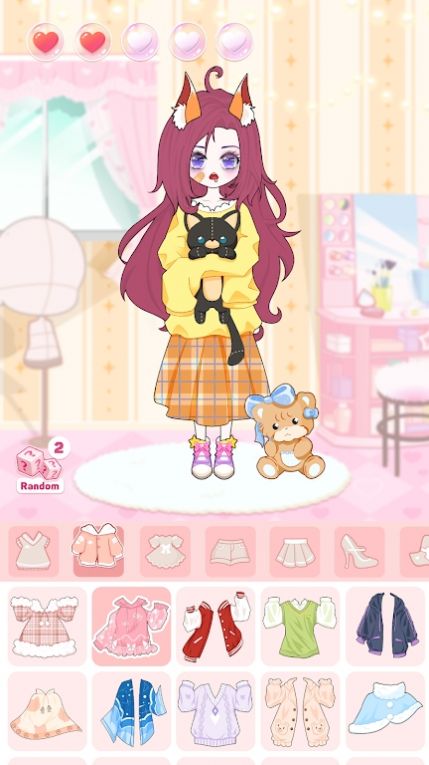 在这个女孩游戏中使用随机按钮。数百种娃娃设计风格可以帮助您!