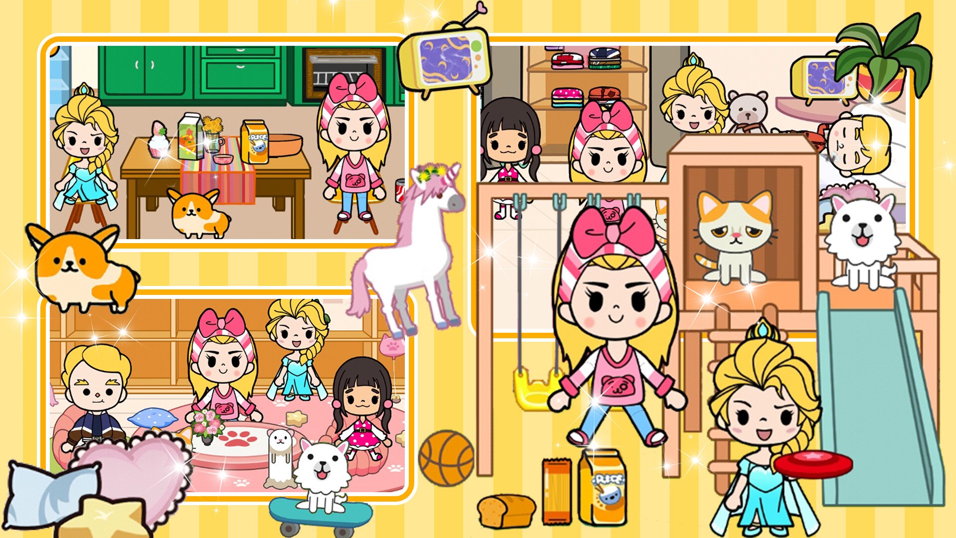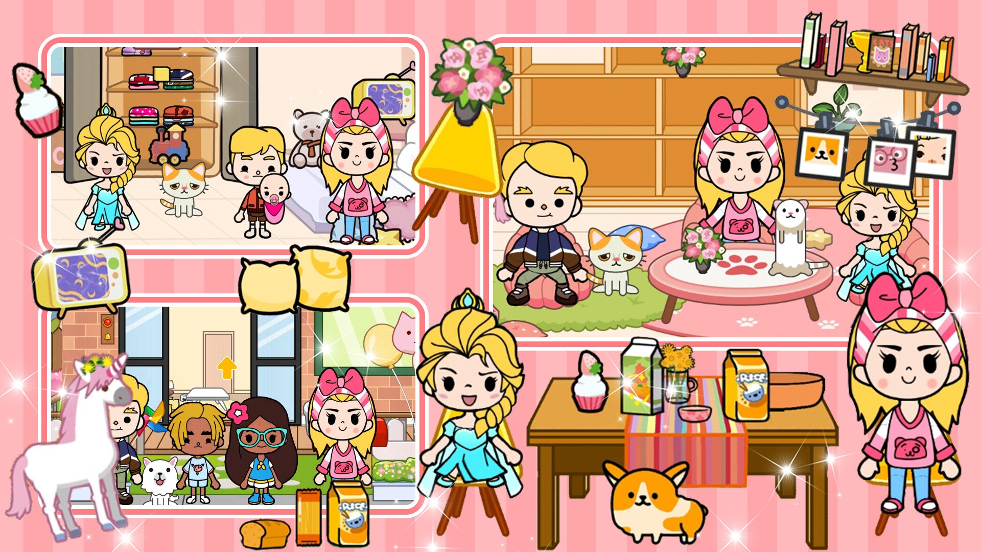 1、冰雪公主房子:用不同的时尚家具和可爱装饰打造你与萌宠梦想中的房子。再用精美的服饰填满衣橱,打造专属时尚小家公寓!
