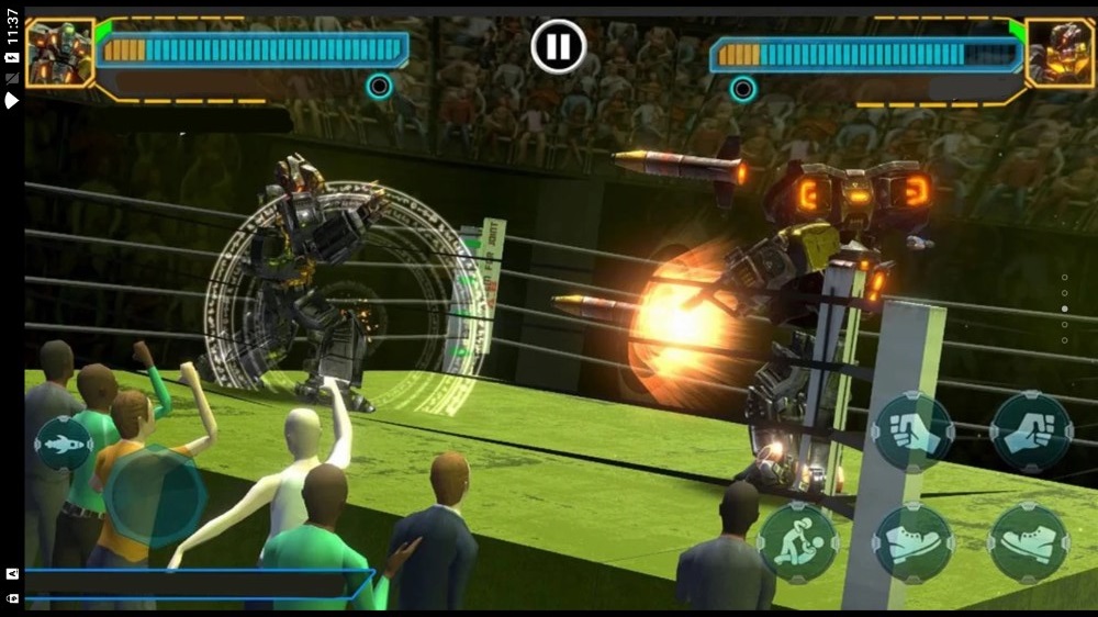 这是一款机器人格斗游戏,玩家可以在游戏中控制各种强大的机器人进行擂台格斗赛。你需要合理运用技巧补充满能量条,轻触屏幕使出史诗动作和超级必杀技。你将在擂台赛中势如破如,在战斗中称雄。