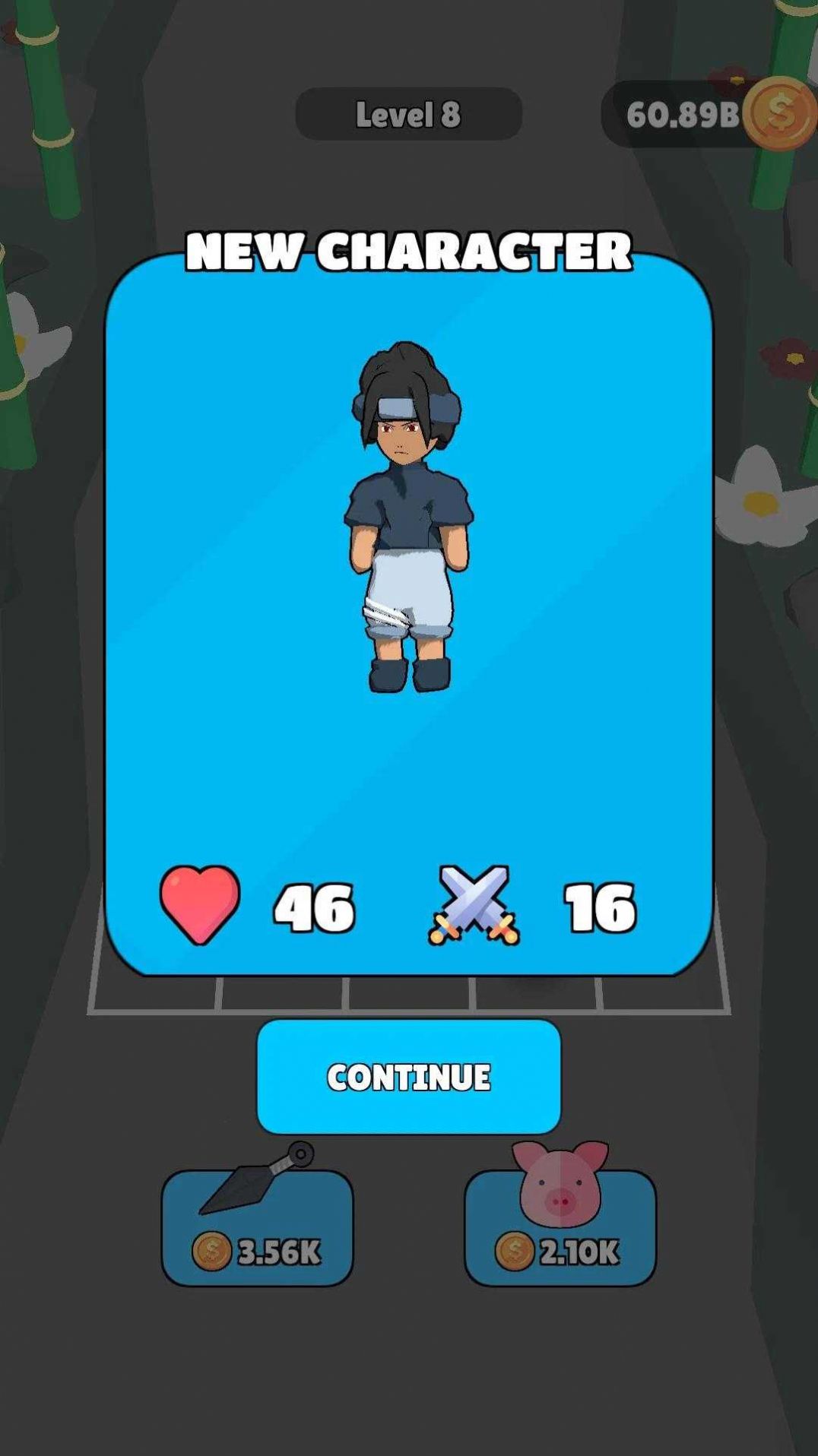 2、自由的战斗,击败敌人,获取闯关的奖励,来升级自己的忍者角色。