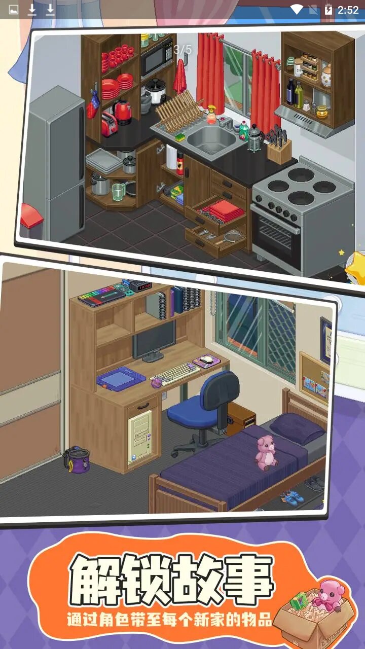 这是一款体验在日常生活情境下将物品从箱中取出,并摆放至新家的禅派益智游戏。
