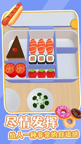 美味的便当游戏的一款可以自由设计便当的休闲小游戏,非常卡通的游戏画风,很多的美食制作玩法,可以随意尝试,给到玩家们更多的惊喜,可以快速进行游戏,通过简单的指尖微操,方式快速进行游戏,自由进行有趣的冒险挑战,享受欢乐减压的游戏玩法,看着各种做好的便当,很有成就感。