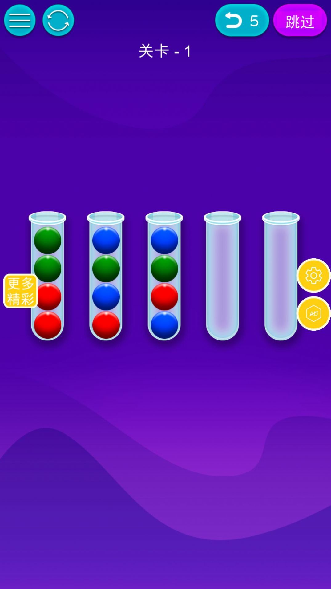 1、首先只需检查管中色球的顺序,然后开始正确排序色球。