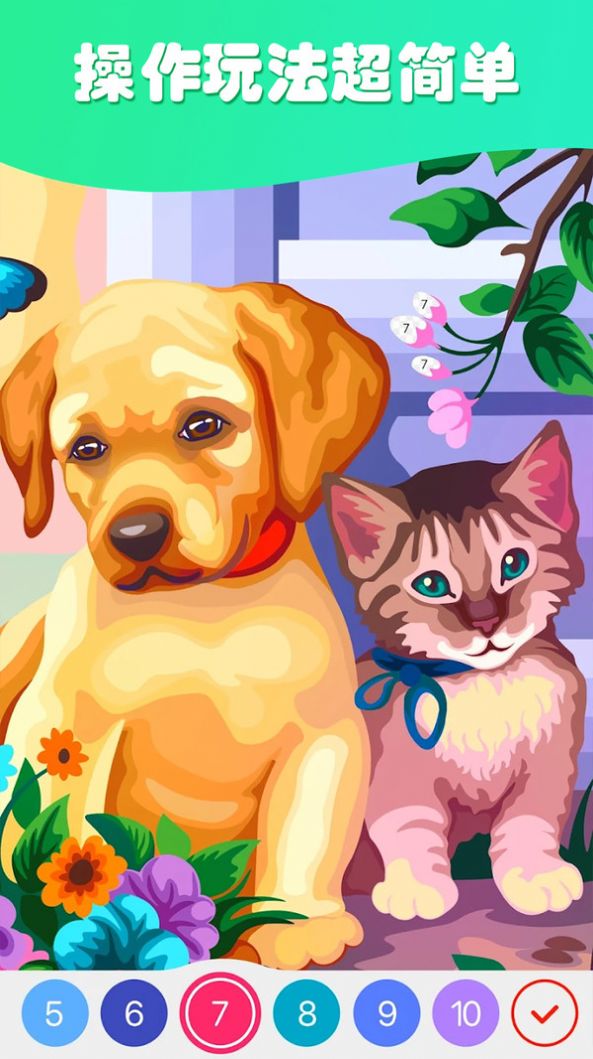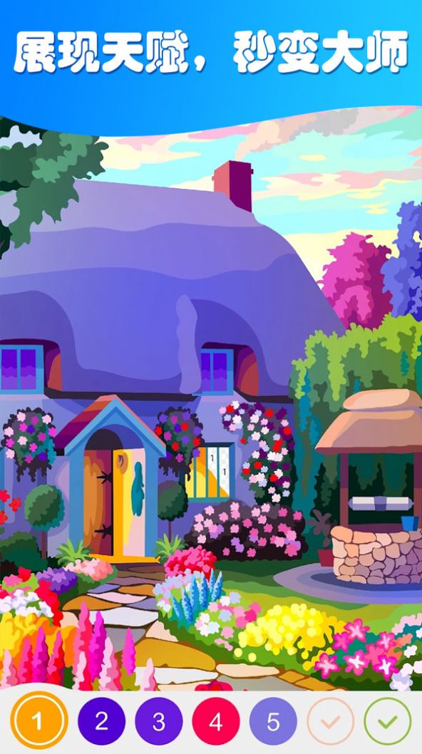 3、玩家在游戏中将通过填色完成轻松各种各样的图画,享受为各种画作添上色彩的感觉吧。