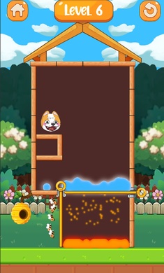 3、体验趣味拉针解谜玩法,在各种场景中快速救出小狗,不断尝试新的拉针顺序。