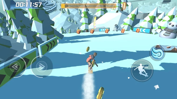 3、关卡的种类有很多,就每一个赛道中的场景都不一样,你需要找到滑雪的规律与技巧才行。