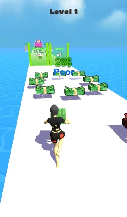 穷人变富人游戏是一款有趣的跑酷游戏,一开始你一无所有,你需要在跑道上收集金币钻石,让自己富有起来,但是每次拾取金币的时候都会有陷阱出现,你需要敏捷的避开才行,一些危险的地带可以策略性的避开,你会走出更远的距离,一起来看看有哪些方式可以帮助你完成关卡吧。