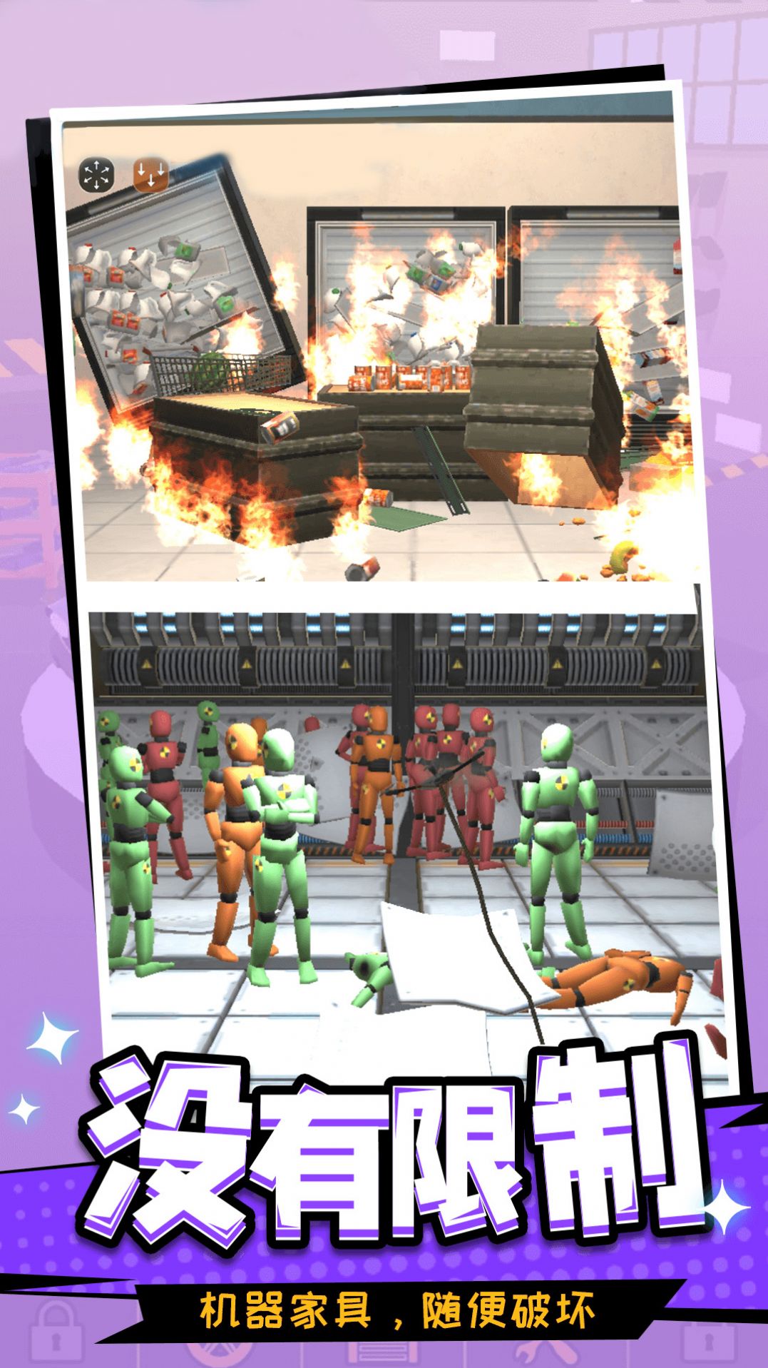 2、在自由的世界中,利用各种道具来进行破坏吧,轻松解压的游戏内容非常的过瘾;