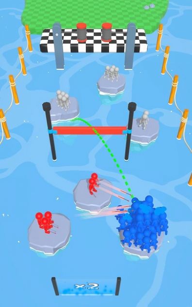 1、顺利的抵达终点还要跟红色的小人进行数量比拼,人多的一方获胜。