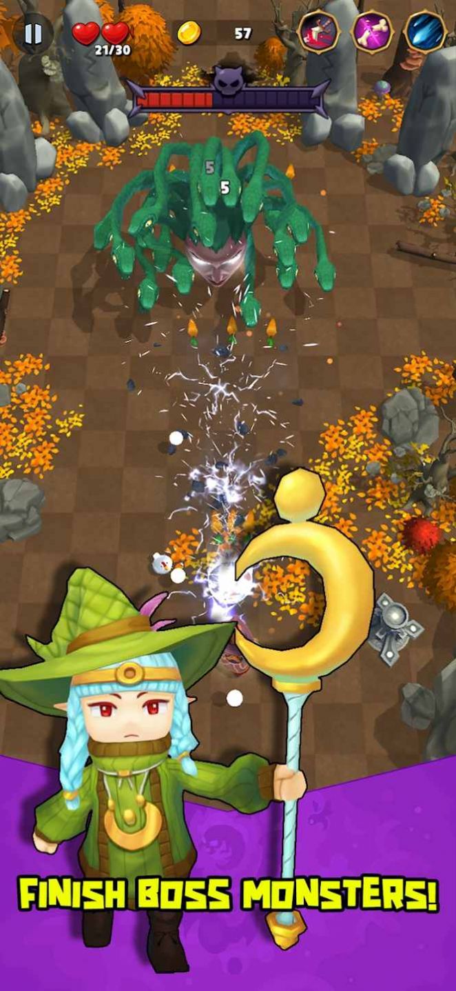 3、探索奇幻世界,收集疯狂的武器,躲避子弹并全力射击。