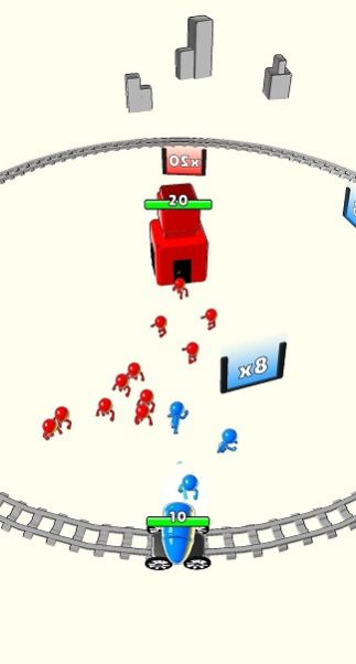 2、滑动屏幕控制大炮左右移动,沿着铁轨围绕敌人的塔楼运行,并发射小兵。
