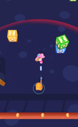 1、随意滑动屏幕控制泰迪熊移动,射击进入射程的玩具。