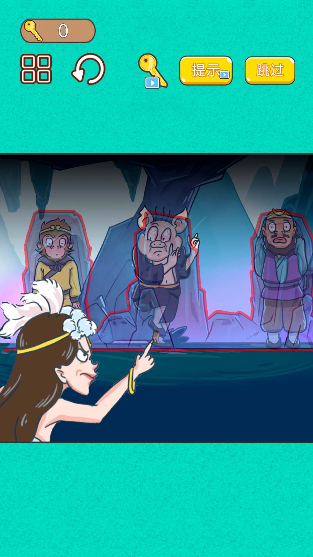 3、快让西游师徒四人藏起来,小心不要被白骨精找到。