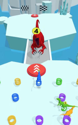 1、以速度取胜,提高收集速度超越对手,你要控制恐龙拾取弹簧。